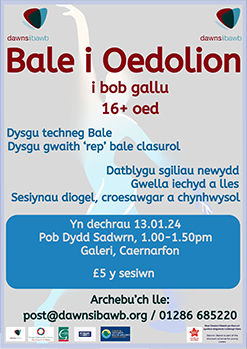 Archebu'ch lle: post@dawnsibawb.org / 01286 685220